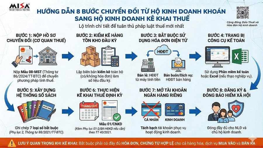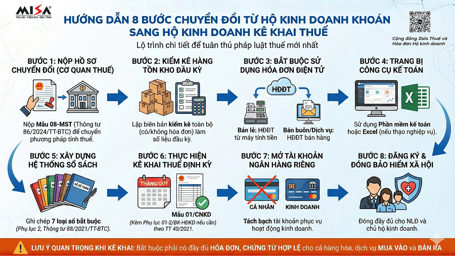 Quy trình 8 bước chuyển đổi từ hộ kinh doanh khoán sang hộ kinh doanh kê khai thuế